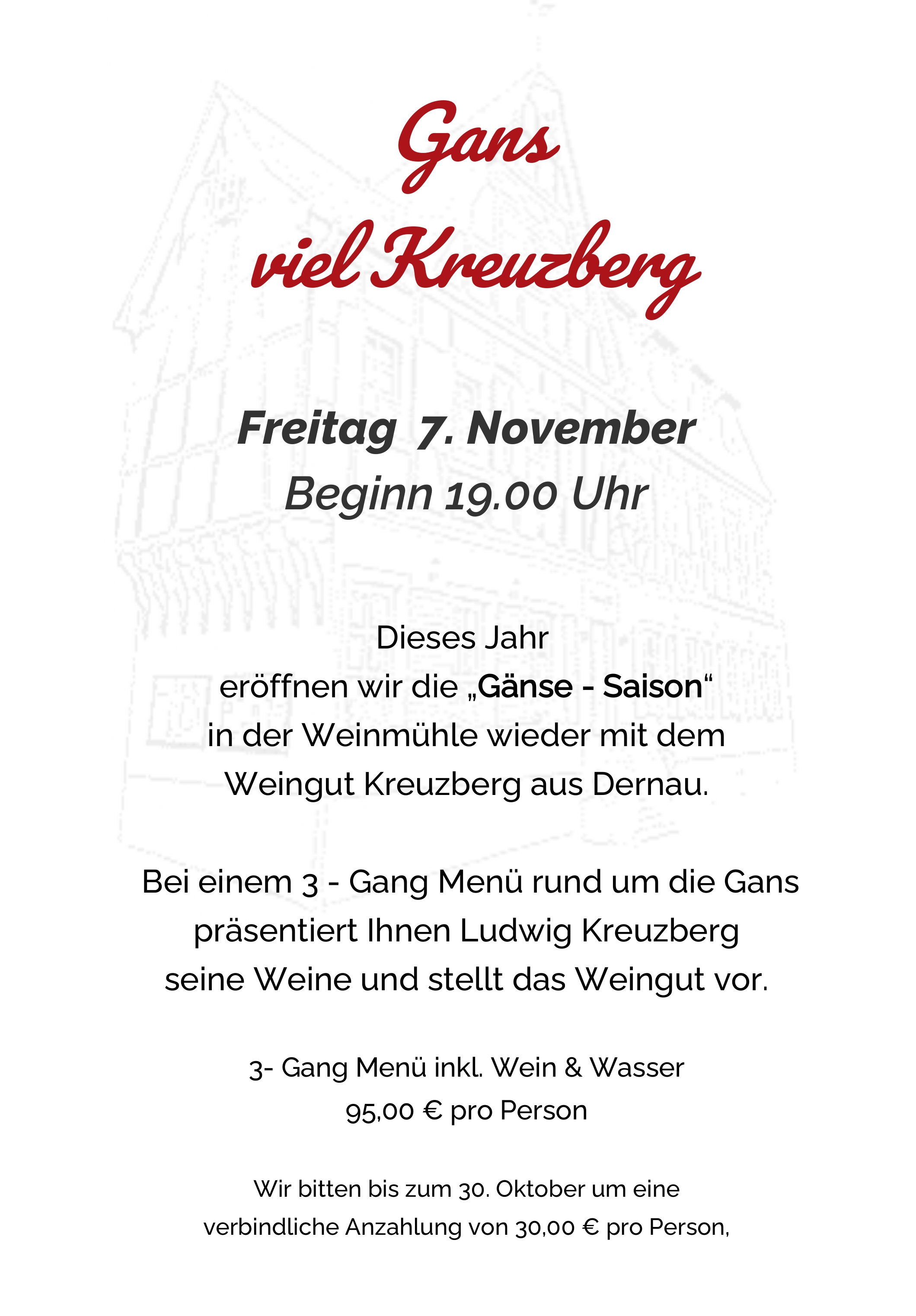 Wir freuen uns, Sie in unserem Restaurant Weinmühle bald einmal persönlich begrüßen zu dürfen.